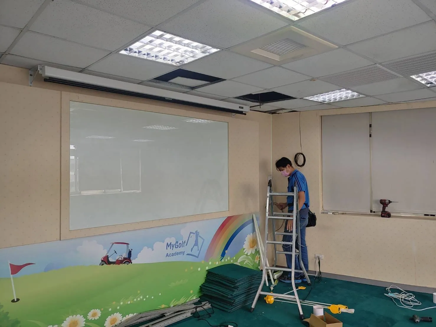 教室投影布幕安裝/教室投影布幕施工/教學用投影布幕/手拉布幕 / 電動布幕