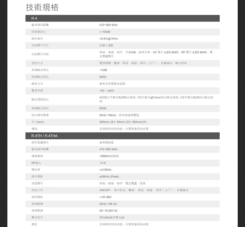 * R-4無線系統提供演出工程所需要的所有功能及效能, 是舞台演出的最佳選擇.