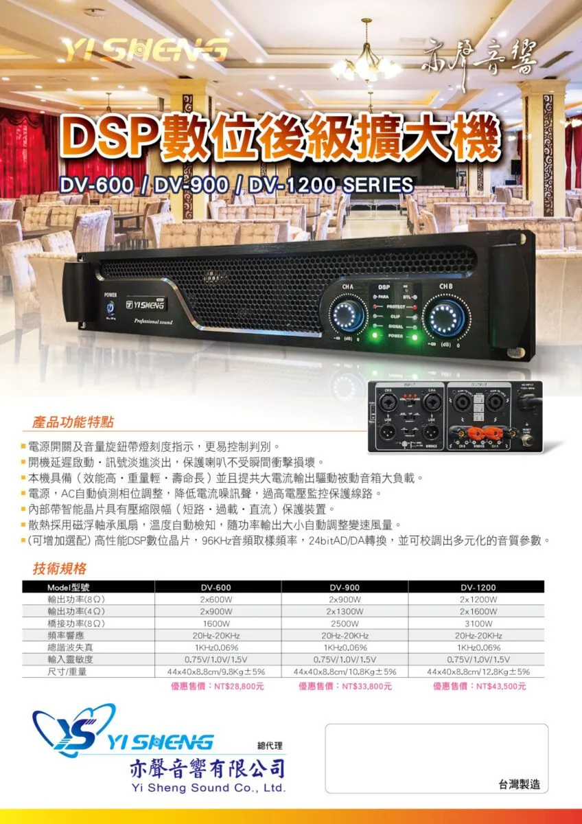 首頁 > 產品總覽 > 音響 / 劇院 > YI SHENG 台製品牌 > YI SHENG DV-600 DSP數位後級 商用高功率擴大機