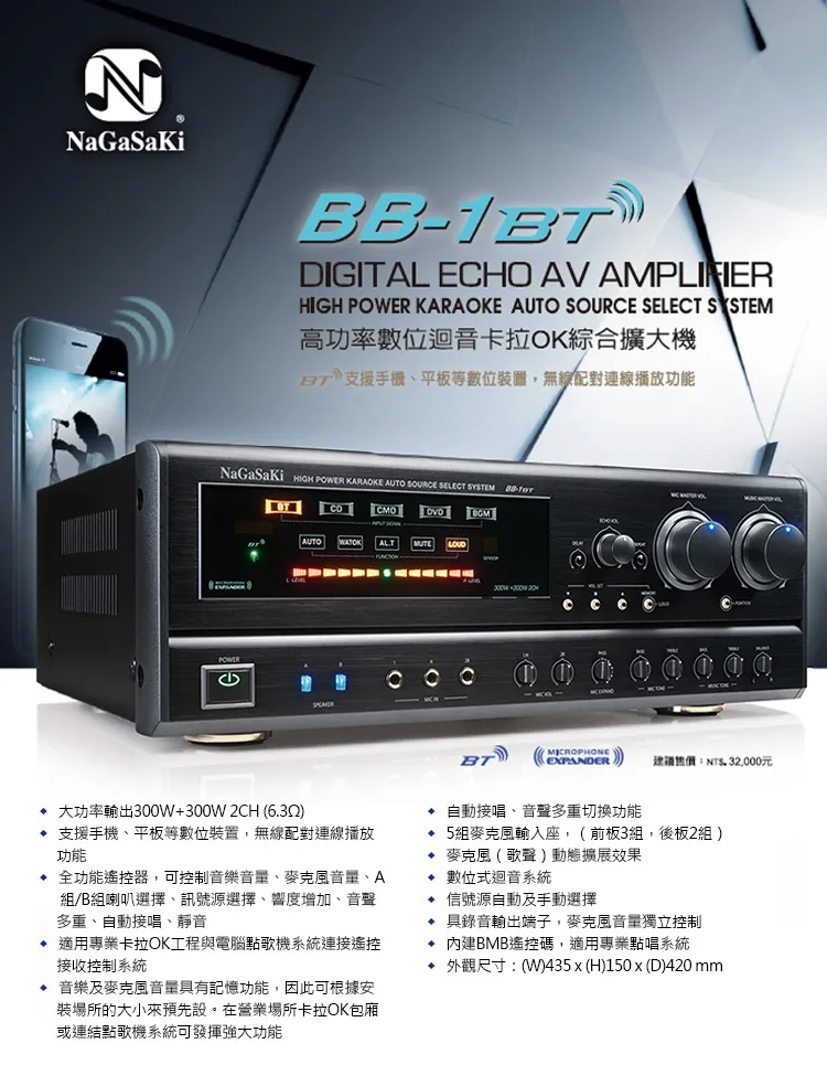 NaGaSaKi BB-1 BT 數位迴音 卡拉OK 藍芽綜合擴大機!