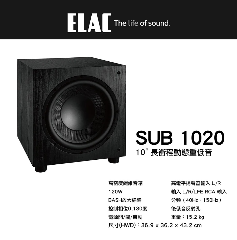 ELAC SUB1020 10吋重低音 家庭劇院喇叭
