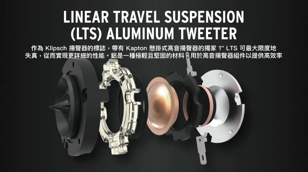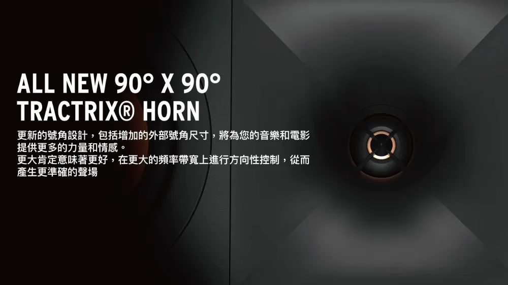 更新的號角設計,在更大的頻率帶寬上進行方向性控制,從而產生更準確的聲場 1″ 鋁製 LTS 高音揚聲器搭配90 x 90 方形 Tractrix® 號角 8″ 紡銅 TCP 低音揚聲器 x2 TCP 低音可實現更平滑的響應並提高準確性和透明度 MDF音箱採用防刮紋理