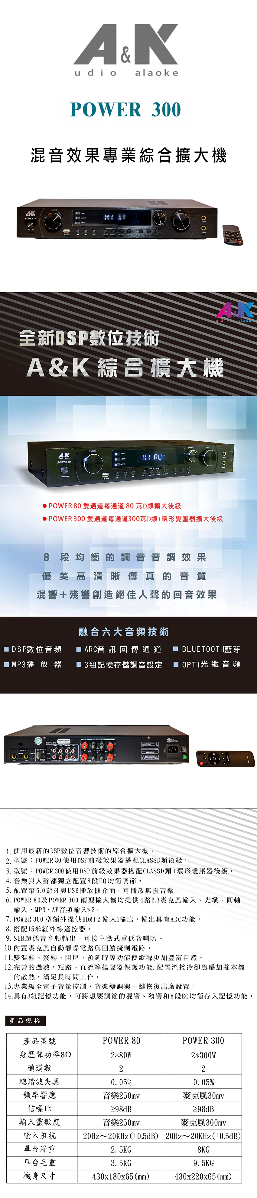 -光纖/同軸/USB/藍芽/AUX/4道麥克風輸入