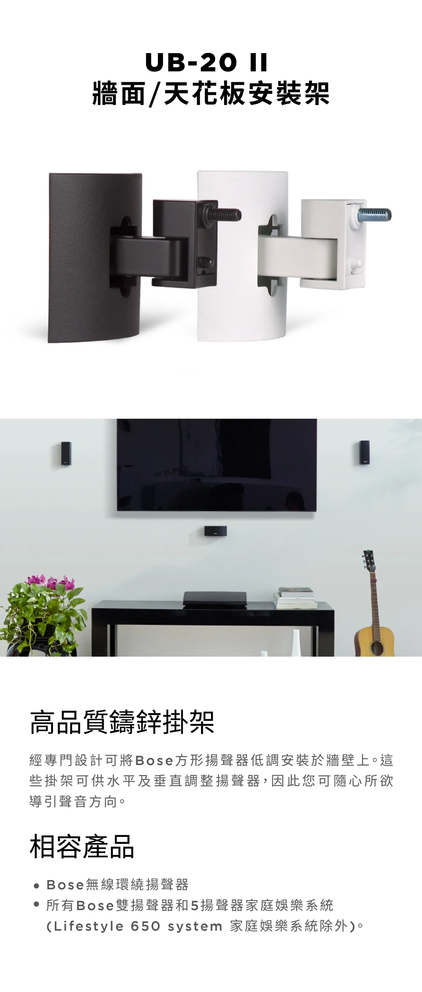 首頁 > 產品總覽 > 影音產品 > BOSE 音響專區 > Bose UB-20 II 牆面/天花板安裝架 白色