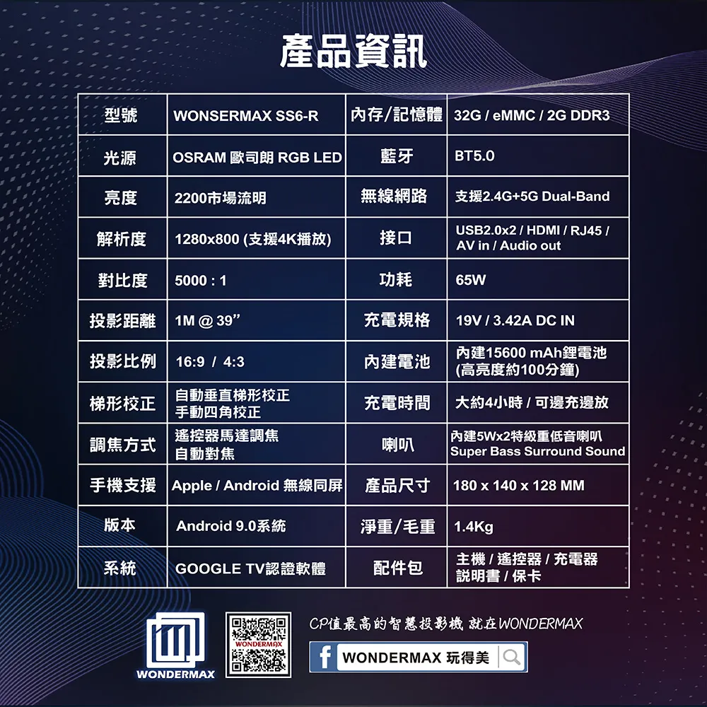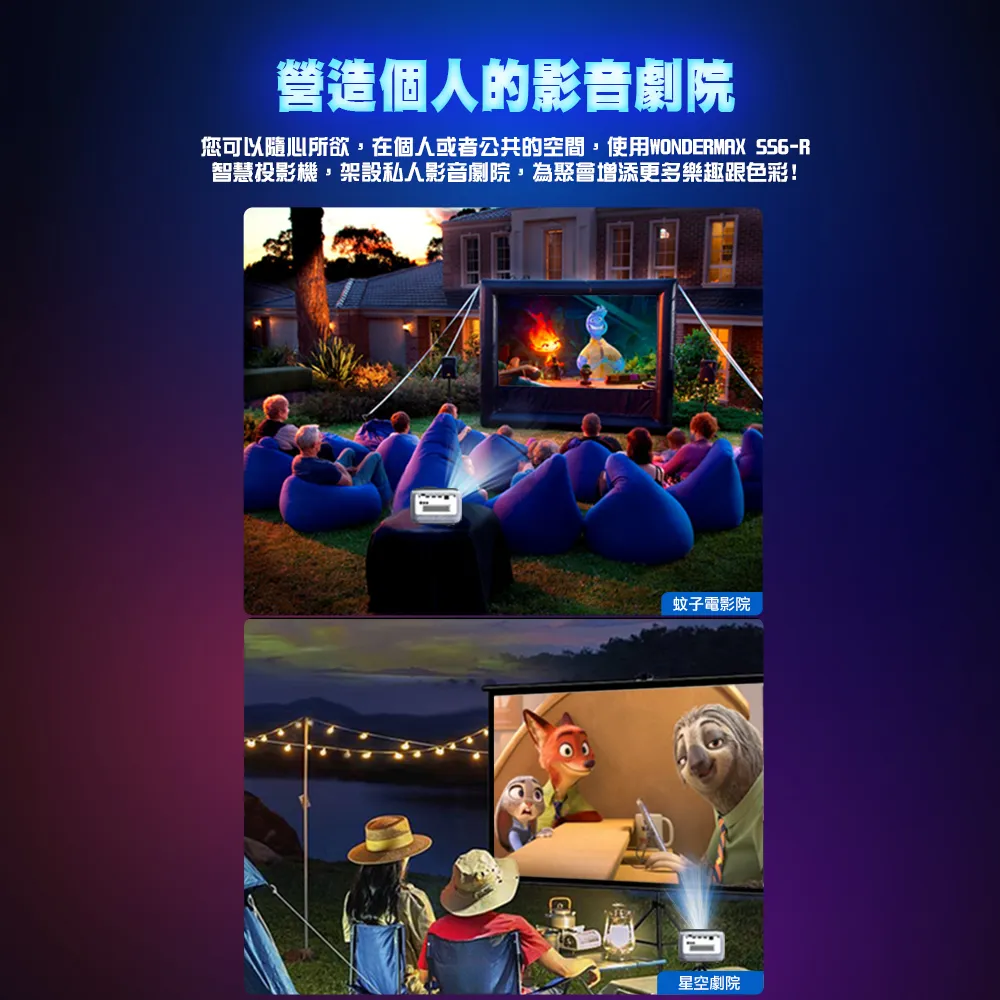 首頁 > 產品總覽 > 各品牌投影機 > 家用投影機系列 > 【Wondermax】 SS6-R WXGA 2000流明 高亮度智慧型投影機