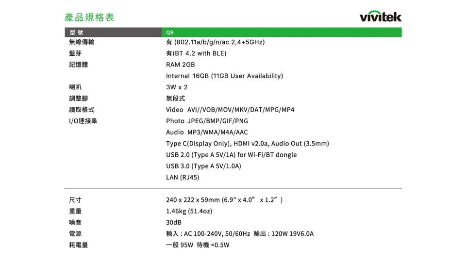 首頁 > 產品總覽 > 各品牌投影機 > 智慧/微型投影機系列 > Vivitek Qumi Q9 FullHD 1080p 智慧微型投影機